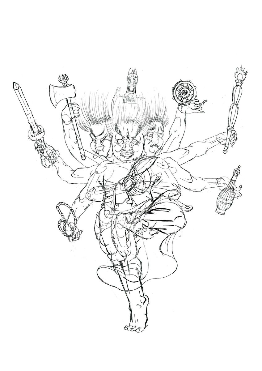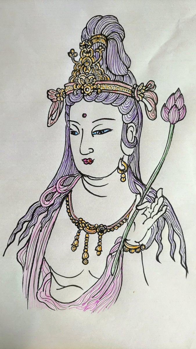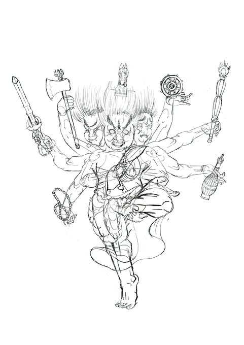 馬頭観音ラフ画(三日月電波 画) 明日も良い一日になりますように☺🌈 #絵柄が好みって人にフォローされたい #いいねかRTで気になった人フォローする #人外が好きな一次創作者フォロー祭 #拡散希望 #妖怪 #観音様 #初夏の創作クラスタフォロー祭り #芸術の輪 #芸術同盟 #絵描きさんと繋がりたい