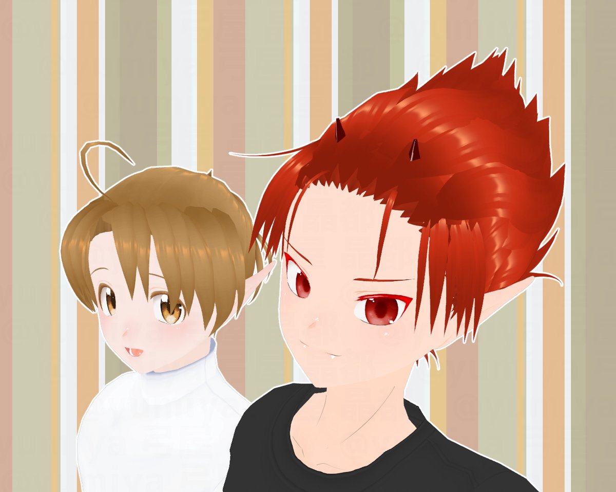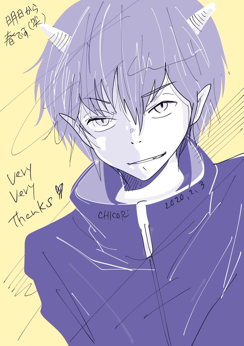 #角好き鬼イラスト2022 なんとか今年の節分イラストが出来ましたー。 ラスとリルの一枚と……。 ……4枚添えるとツノが小さすぎて見えなくなる気がするので、残りのおまけ3枚はスレッドに下げておきますね(苦笑)