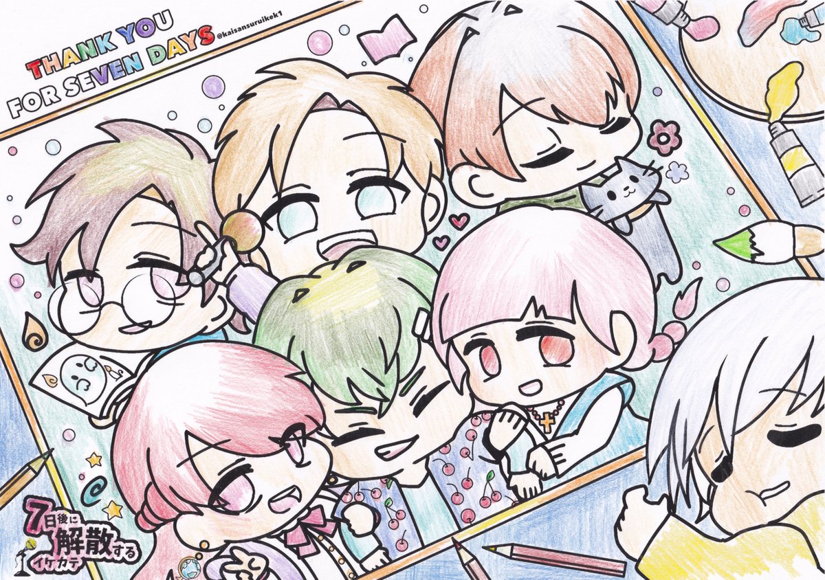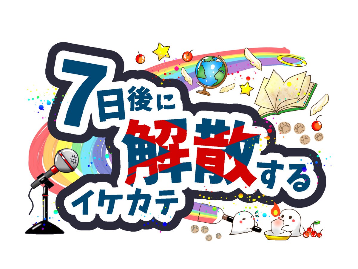 「7日後に解散するイケカテ」というグループの ロゴ、サムネイル、背景、デフォルメイラスト等のお手伝いをさせていただきました リプ欄まで見てくださると嬉しいです(1/7) #ロゴ #イラスト #解カテ #背景 #サムネイル #ゆるいイラスト #絵描きさんと繫がりたい #今月描いた絵を晒そう