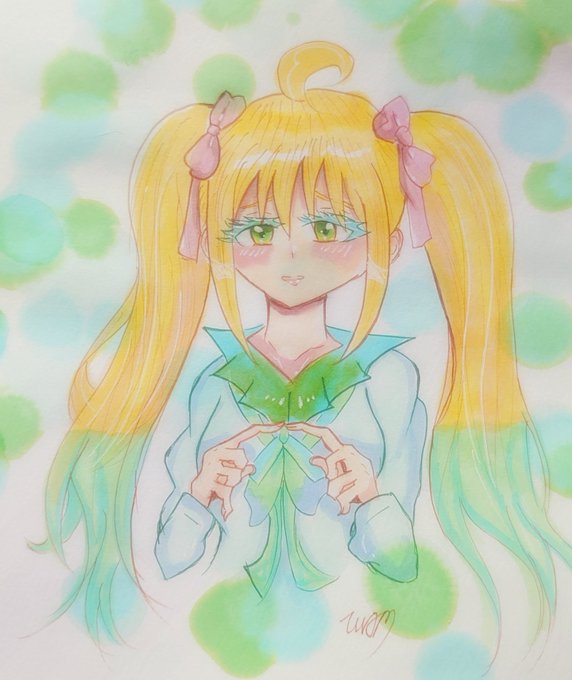 #触りたくなる髪の絵を見せて 今朝上げた、データ移行中の暇つぶしに描いたイラストが、この自作タグに合うのではないかと、少し明るくトリミングして再掲載。 #たぶちが アオハルのアナログイラストです。 twitter.com/em_makiweb/sta…