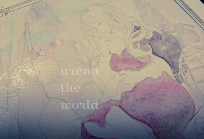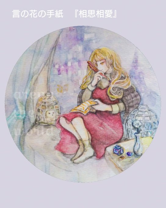 #言の花の手紙 彼者誰(かわたれ)に 夜も朝も静まり ただ私のペンが紙に触れる音だけ 部屋に響いている #透明水彩 #illustrationart #watercolorpainting #窓辺から #ドーム額