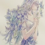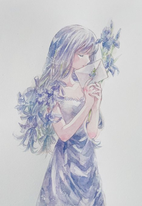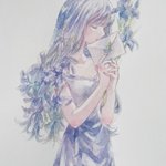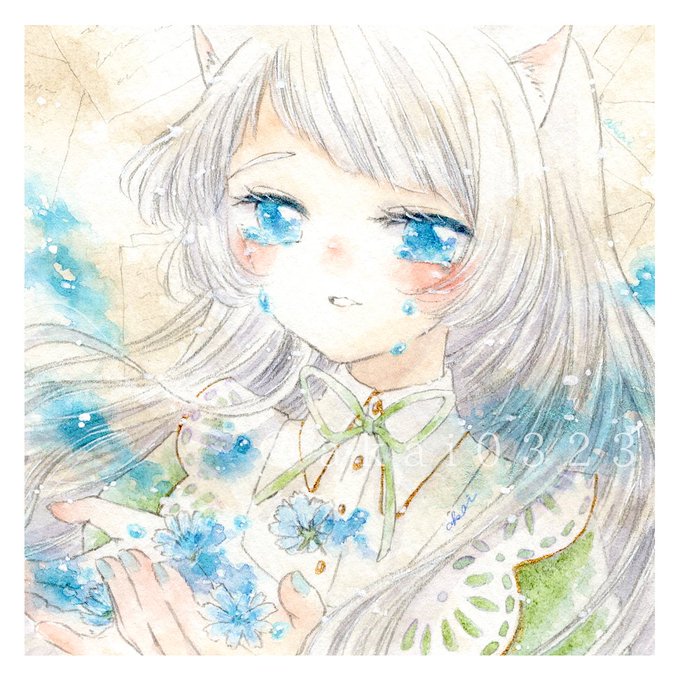 「蒼い涙」 あなたを想ってこぼれた涙が 小さな蒼い花を染めたなら あなたのそばでも そっと 咲きますように ホワイトワトソン 100×100mm #透明水彩 #言の花の手紙 出展作品 #のらねことワルツを