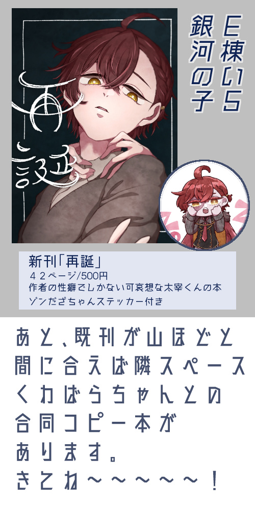 (改めて投稿失礼します❗️) 21時からboothで公開いたします❗️ よろしくお願いします❗️ booth huura0121.booth.pm サンプル pixiv.net/artworks/98395… 3、4枚目はコピー本の表紙裏表紙です❗️ #言紡