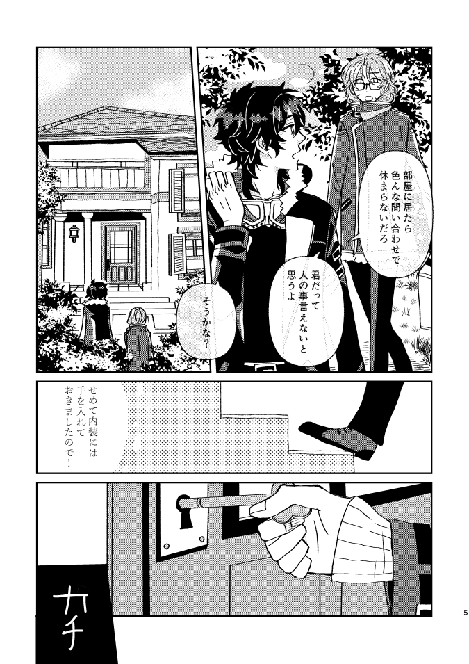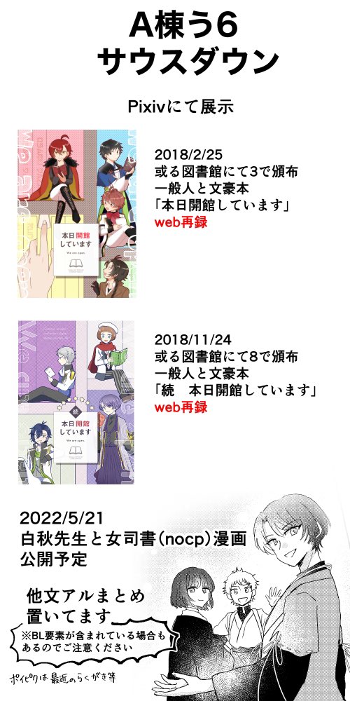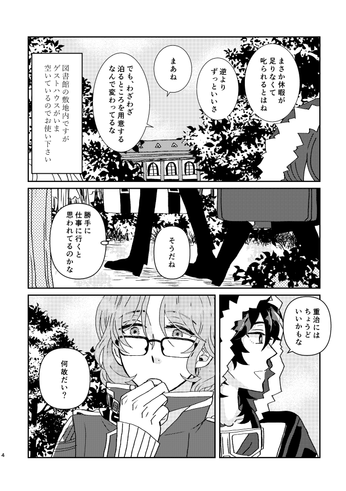 言紡で発行予定の新刊サンプルです。 「君と日向の窓」多喜重/P28/400円/全年齢 数日の休暇を図書館のゲストハウスで過ごす多喜重の話し ゲスト・表紙デザインは笑笶さん(@emici_kmky) 少し長めのサンプルはpixivにあります→pixiv.net/artworks/98370… #言紡 #言紡_参加