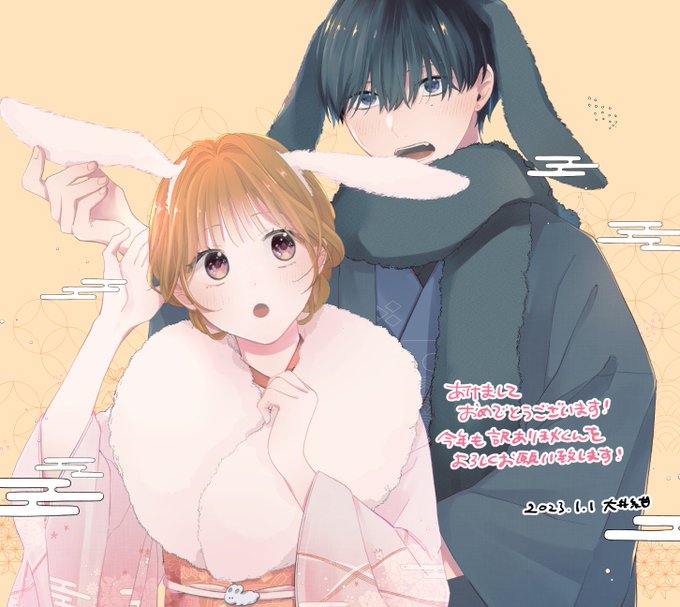 あけましておめでとうございます! 僭越ながらGANMA!アプリの方で新年イラストを描かせていただきました! 着物可愛くかけたのでこちらにも...! 🎉アプリの方はデザイナー様にとっても可愛く仕上げて頂いておりますのでそちらも是非ご覧いただければと思います!🎉 #訳あり秋くんの恋が聴こえる