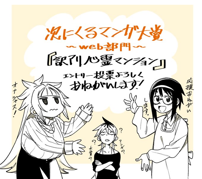さぁ始まりました「次にくるマンガ大賞 2023」!! 今年が初参加となります【訳アリ心霊マンション】 よろしければ Webマンガ部門 にて推薦していただけると嬉しいです!!やあああああああい!!! エントリーページ▶️ tsugimanga.jp #次にくるマンガ大賞 #訳アリ心霊マンション