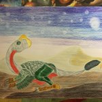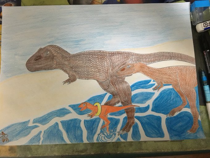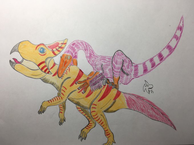 すんません、投稿し直しました(^◇^;) 題:月下に思う きっと彼らも僕らと同じように綺麗な空を見上げていた…… #オヴィラプトル #評価よろしくお願いします #オリジナルイラスト #絵師さんと繋がりたい #恐竜