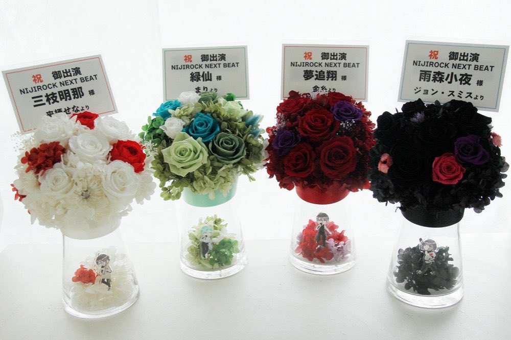 NIJIROCK NEXT BEAT開催おめでとうございます🎉 お友達と一緒に夢追翔さん、雨森小夜さん、三枝明那さん、緑仙さん宛にお花を贈らせて頂きました💐 イラストも担当させて頂いております!✍✨ ライブ凄く楽しみにしていました🥳応援しています!ふぁいとだ〜!💪 #NIJIROCK_NB #絵かける #話かける