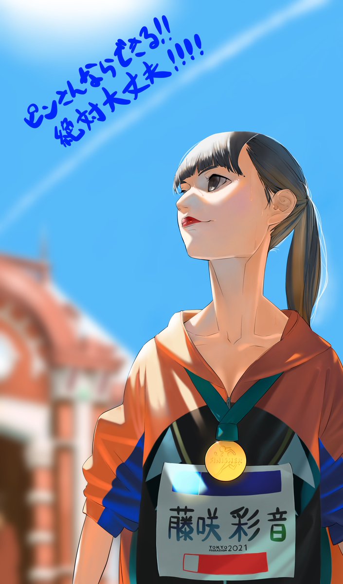 東京マラソン頑張ってねピンさん! スポーツ選手やアスリートの方達は、競技の前に成功する自分をイメージして挑むって聞いたことがあって、なので気が早いって突っ込まれるかなとも思いながらもこのイラストにしました。 良いイメージで走れますように!! #話があるんだピンちゃん #でんぱイラ