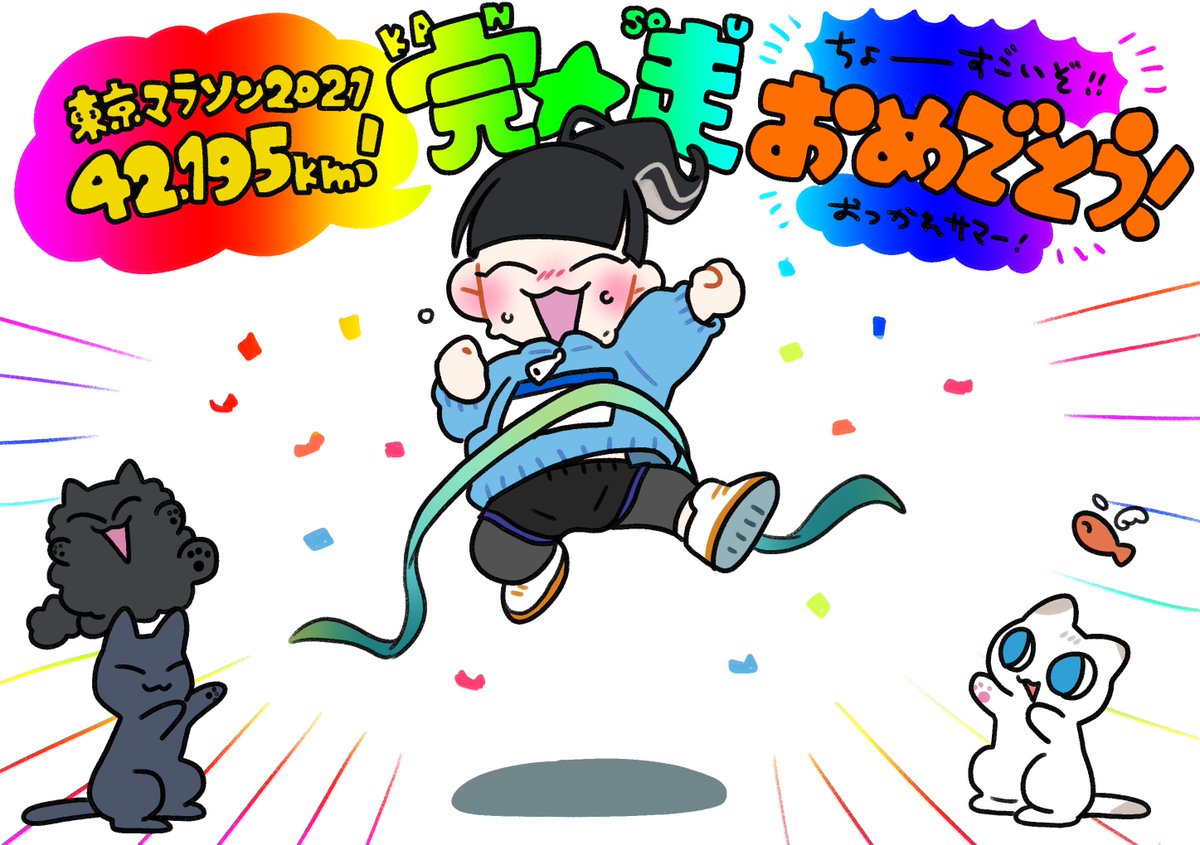 完走!!!!!おめでとーーー!!!!!!!🎊うわーーーーーーー!!!!!すげーーーー!!!!!本当に!!!!!本当にお疲れ様!!!!!!!!おめでとぉーーーー!!!!!!!!! #話があるんだピンちゃん #でんぱイラ