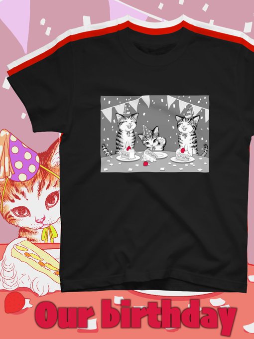 #Tシャツ 他登録しました、ぜひどうぞ 「ぼくらのたんじょうび」 年に一度の #いちごショート(猫用)。 #SUZURI → suzuri.jp/nya-mew/973835… #Tシャツトリニティ → ttrinity.jp/product/882202… #猫 #ねこ #子猫 #イラスト #絵描きさんと繋がりたい #Cats #kittens #Birthday #誕生日 #strawberries