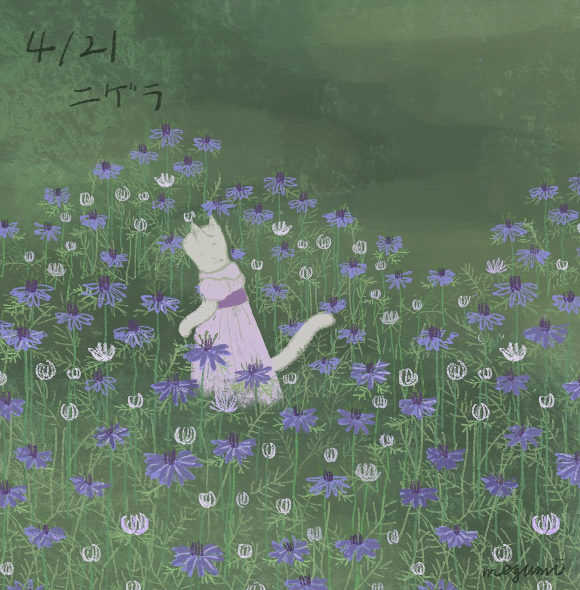 7月25日の誕生花はトリカブトです。花言葉は栄光。 #猫イラスト #絵本 #挿絵 #イラストレーター #イラストレーション #誕生花イラスト #サビトラ #夏の創作クラスターフォロー祭り #絵柄が好みって人にフォローされたい