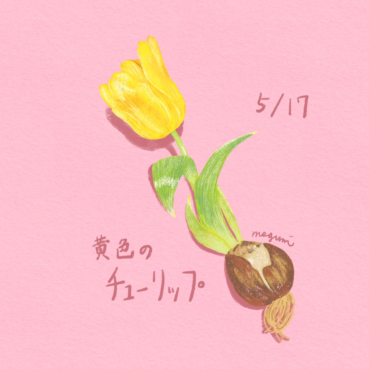 5月16日の誕生花は黄色いチューリップです。花言葉は希望のない恋。 チューリップも薔薇と一緒で色によって花言葉が違うようで #花イラスト #絵本 #挿絵 #イラストレーション #イラスト好きな人と繋がりたい #一日一絵 #illustration #誕生花イラスト #ボタニカルアート #スケッチ