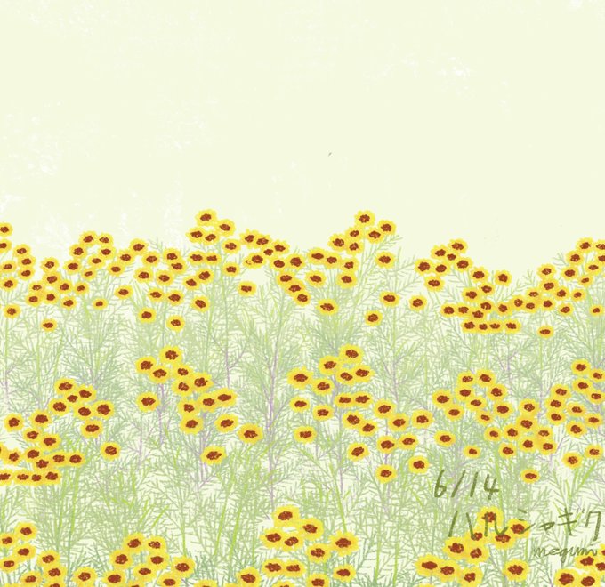 6月14日の誕生花はハルシャギクです。花言葉はいつも陽気。 ミスドの白ポンデ食べました。握った時にペシャンコにしてしまいそうな固さとモチモチさにびっくりしました。 #イラストレーター #イラストレーション #イラスト好きな人と繋がりたい #一日一絵 #誕生花イラスト #ボタニカルアート