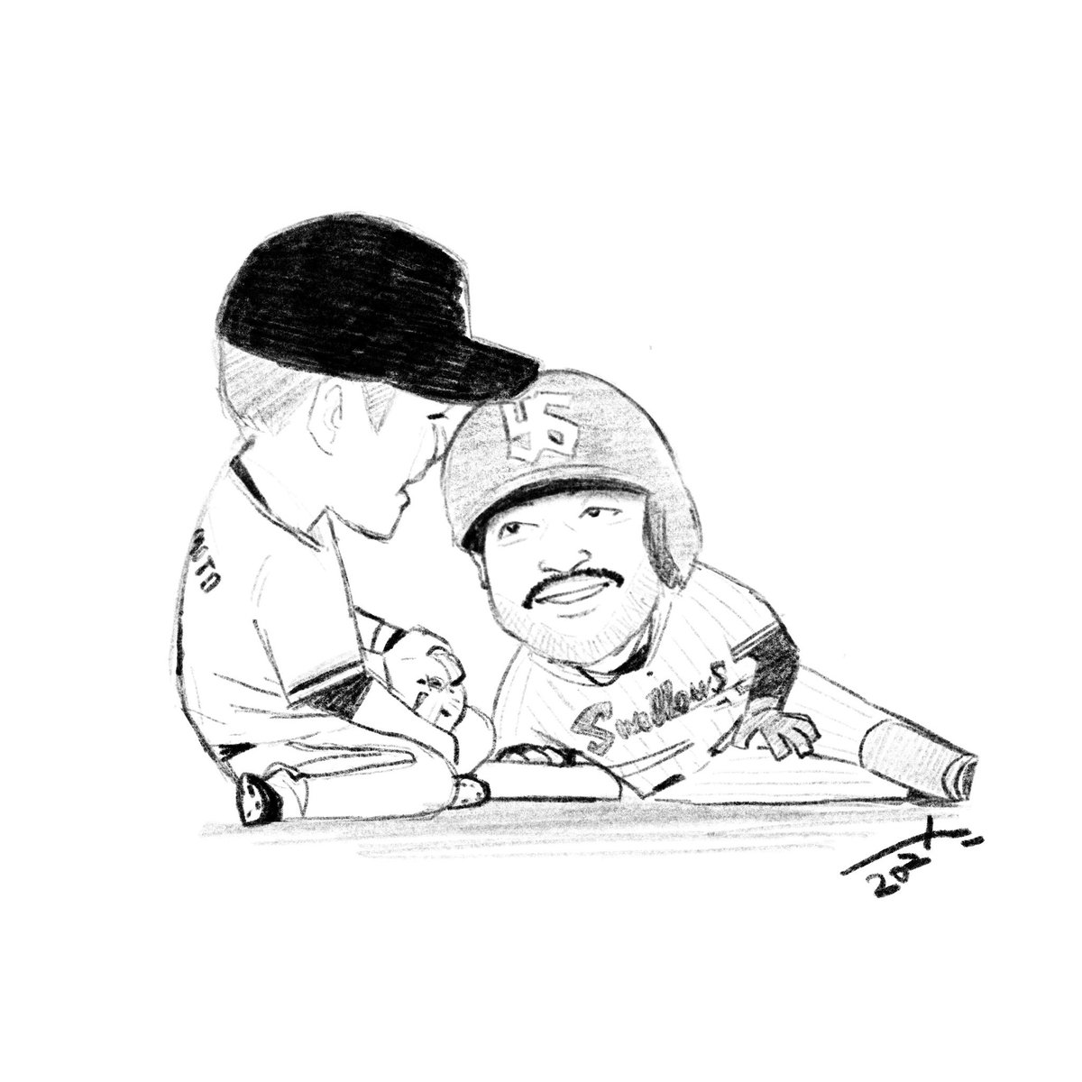 きのうの巨人―中日から。 ノーバウンド返球でホームに突っ込む阿部選手をアウトにして、 丸選手と喜ぶこの選手を描きました。私、中日ファンですが、スローイングに難があったこの選手の努力が見られて、ちょっと感動しました。 #アダム・ウォーカー #丸佳浩 #読売ジャイアンツ