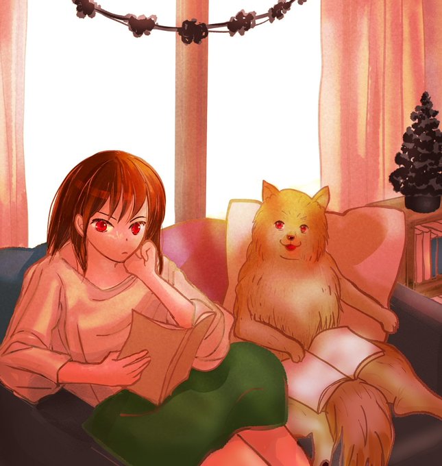 妄想わんこペス🐾となつみちゃん❤️#読書の秋 バージョン #読書週間 #イラスト #絵描きさんと繋がりたい #イラスト好きさんと繋がりたい #デジタルイラスト #オリジナルキャラクター #犬 #女の子 #クリップスタジオ