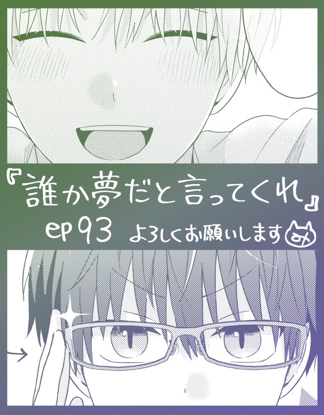 こんばんは!明日18日0時にep93更新されますのでよろしくお願いいたします〜!👓✨ #誰か夢だと言ってくれ #マンガMee 🐈⬛prod-2019-a.manga-mee.jp/webview/v1/sns…