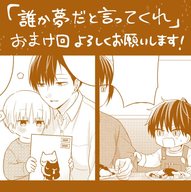 こんばんは!明日8日0時におまけ回更新されますのでよろしくお願いいたします〜〜!🐈⬛🍼🐕 #誰か夢だと言ってくれ #マンガMee 🐈⬛prod-2019-a.manga-mee.jp/webview/v1/sns…