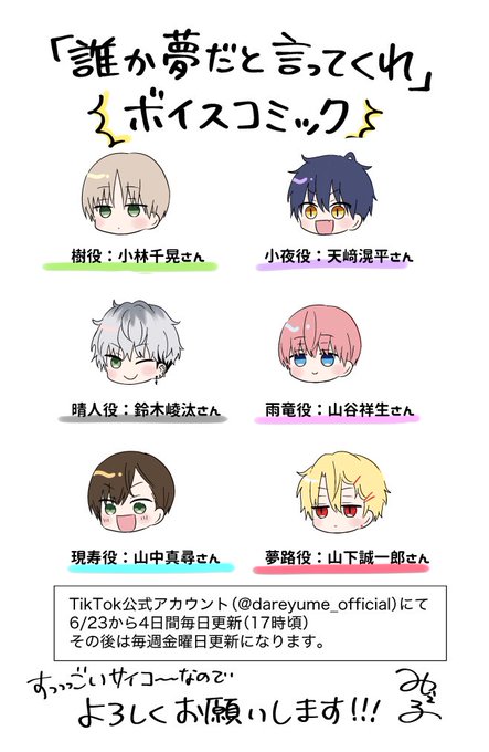 ボイスコミック本当に最高なのでぜひぜひよろしくお願いします!!🐈⬛ しばらくは毎週火曜日のMeeの漫画更新と一緒に金曜日のボイスコミック更新も楽しみにしていただければ嬉しいです🥰🙏 #誰か夢だと言ってくれ twitter.com/shiroayane/sta…