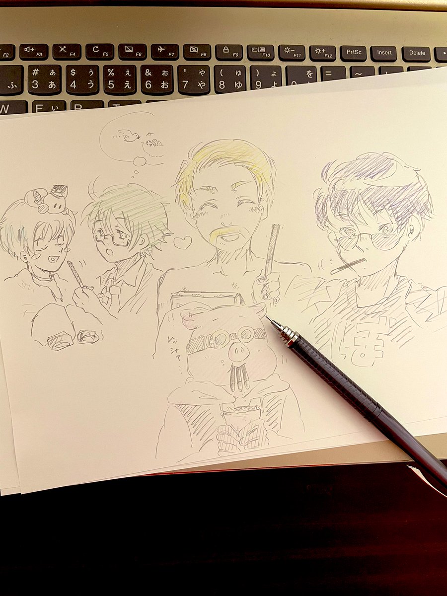 ドズル社ショート見て可愛かったので描きました✨頑張った😭 #ドズル社 #ドズル社アート #ドズってる #ぼんさん何してんすか #はよ見ろやあ #見るかもわからん #誰でも見れますねえ #今回のネコおじ