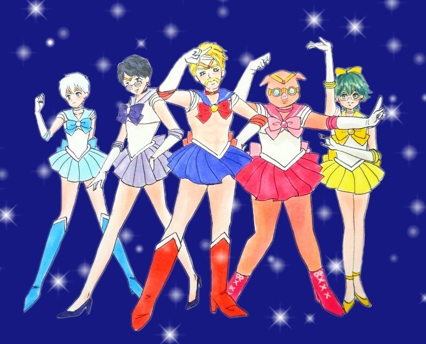 月にかわっておしおきよ🌙 100万人記念描いてたはずが脱線しました😇 ドズルさん!メンバーも巻き込んで美少女戦士にしちゃいました🤭 #ドズってる #ぼんさん何してんすか #はよ見ろやあ #見るかもわからん #誰でも見れますねえ #ドズル社アート 構図はアニメ画像を参考にしました😊