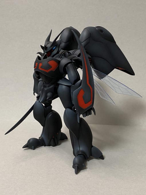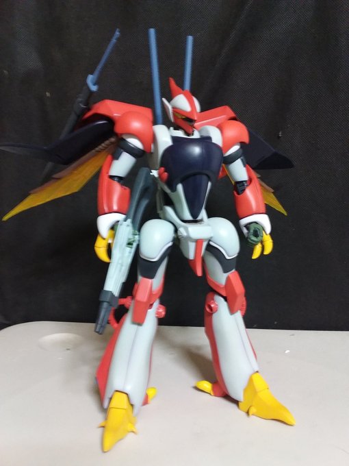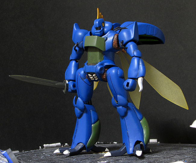 「全身改造ビランビー」(-_-;) 悪名高き1/72ビランビーの徹底改修。胸薄腰太りのオムツ体型の修正、四角いロボット脛を切開し尖らせる、ベタ足の爪を立たせる、頭部の鶏冠・頬袋・目の位置の変更等々、全てに手を入れて自分の納得いく形にたどり着いた労作。 #誰にでも自分だけのオーラバトラーがある