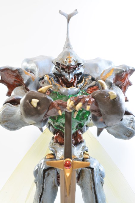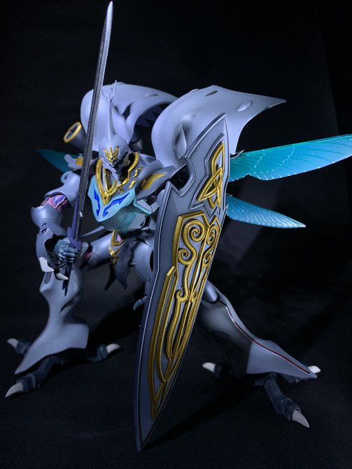 「旧キットズワース」 HGではない旧キット。巨大コンバータを胴に寄せ重心修正。なで肩をスペーサー入れることで解消。シールド・剣の大型化等など。手は好みでダーナ・オシーのものに変えてある。シタデル筆塗り。 #誰にでも自分だけのオーラバトラーがある
