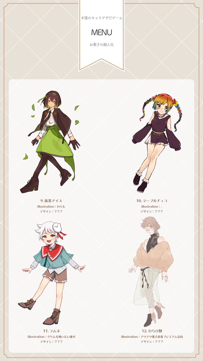 #誰のキャラデザだゲーム ガタスさん主催の「スイーツ✖️恐竜擬人化」で参加させて頂いております✨ 私が”デザインした子”を当てるゲームです!(13の子は描かせて頂いた子) よろしければ、下記ツリーのアンケートの投票に付き合って頂けるとうれしいです!