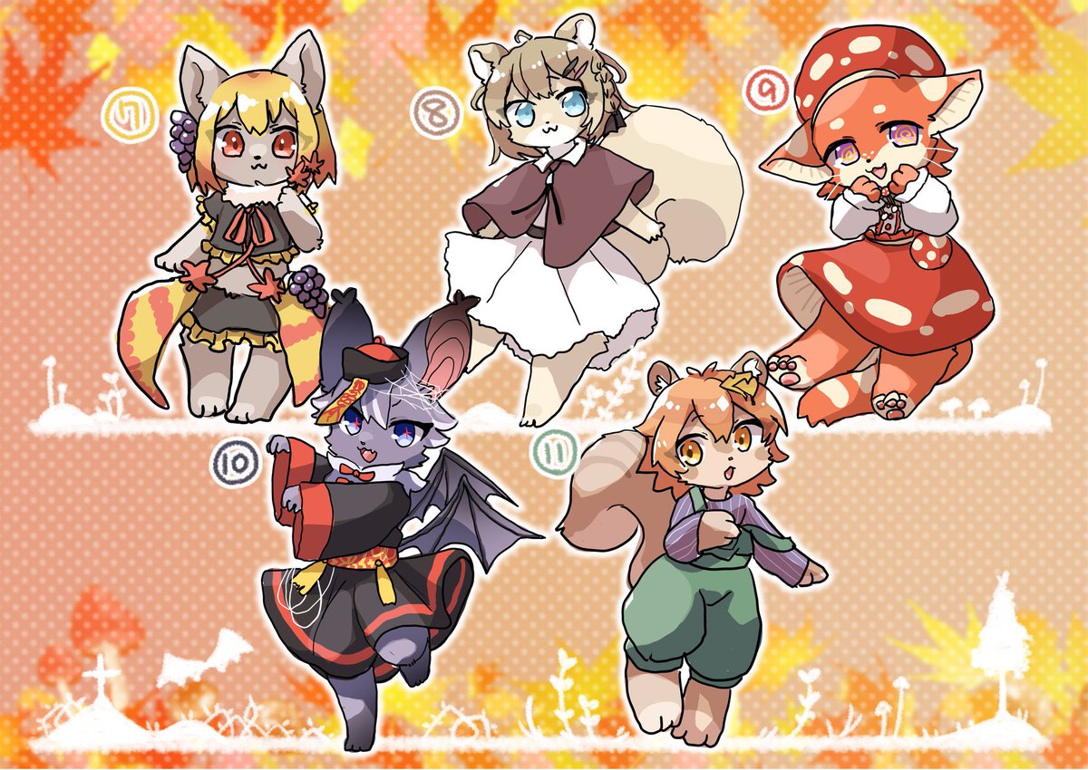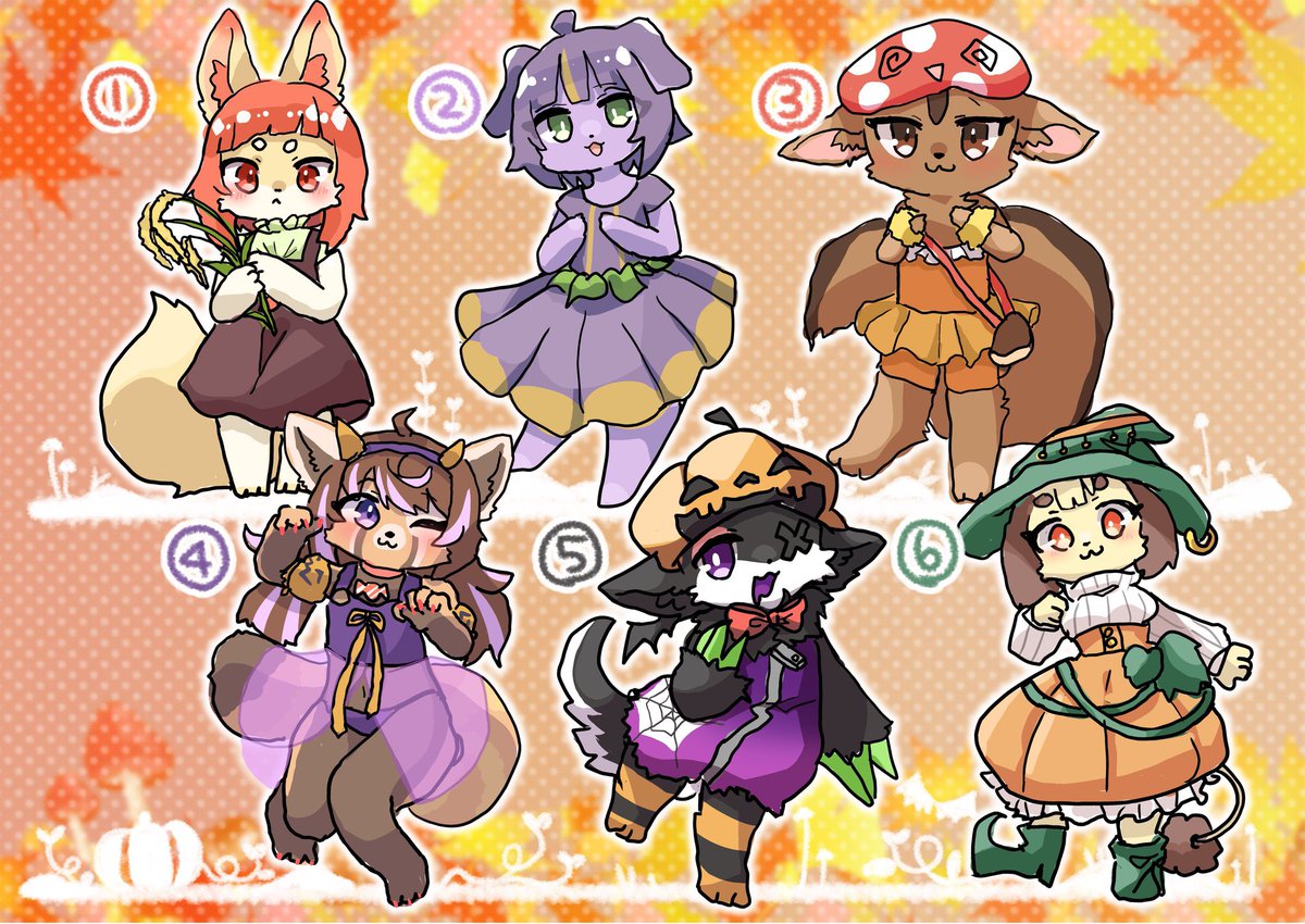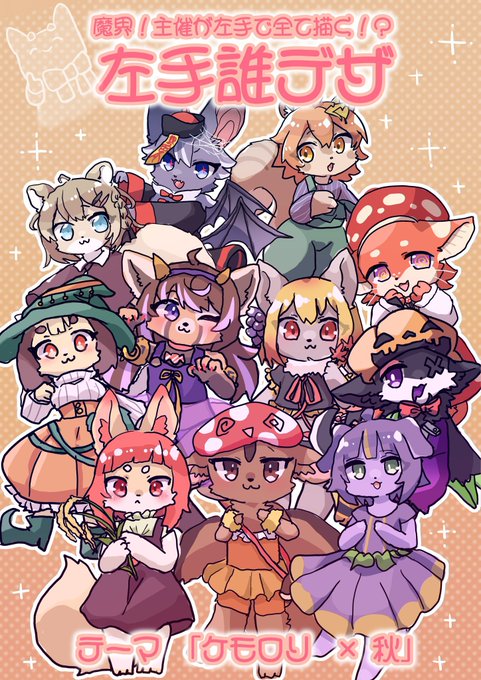 #誰のキャラデザだゲーム テーマ『ケモロリ×秋』 利き腕じゃない手で主催が全て描く誰デザ主催をいたしました! 解答シートとリプにアンケートを吊り下げるので是非当ててみてください! よろしくお願いいたします…!