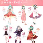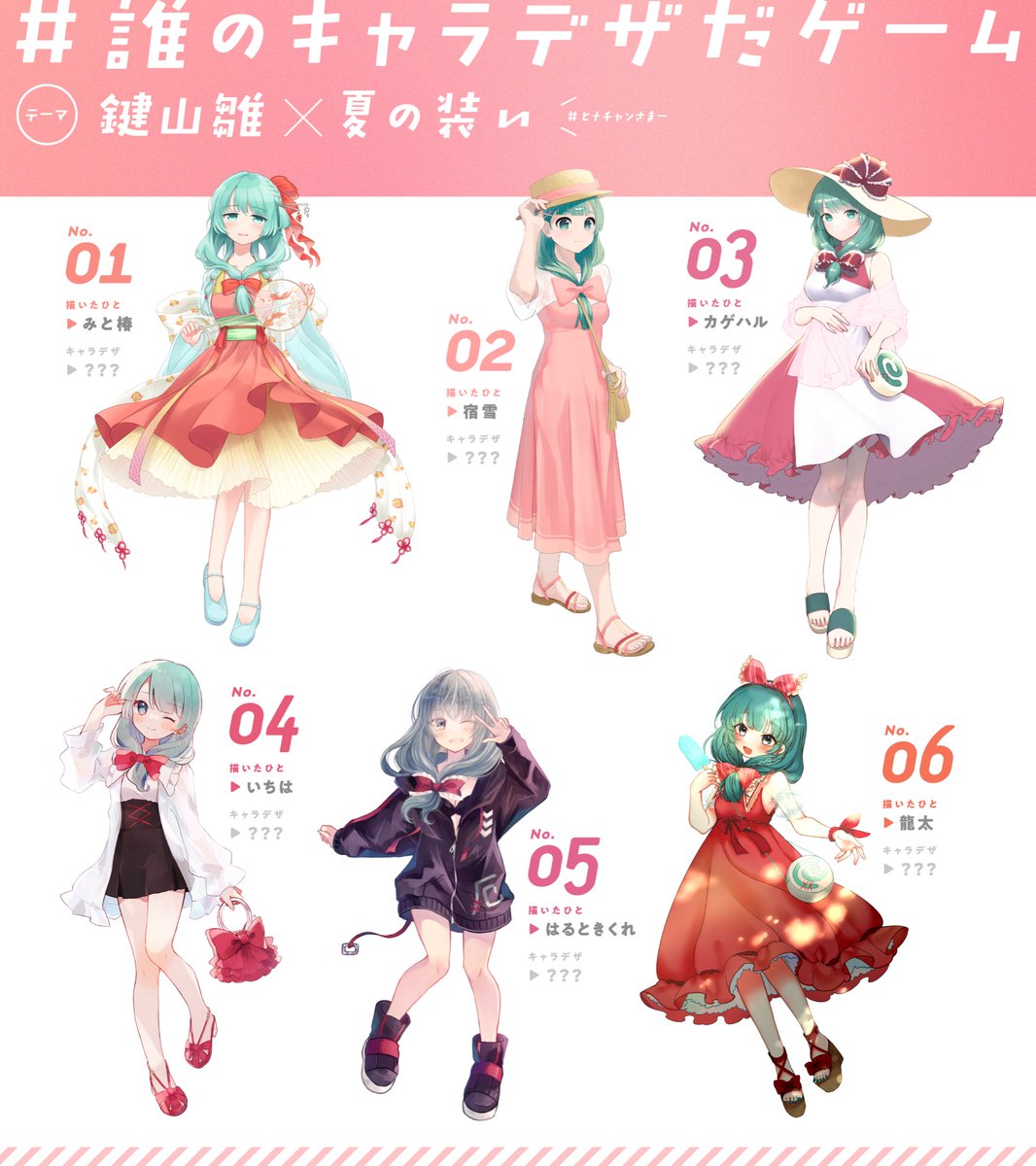 雛ちゃんの夏の装いを交換して描きました~!私がデザインしたのは何番でしょうか? 🎀アンケートをツリーに追加するので、是非あててみてください!👒 #ヒナチャンさまー #誰のキャラデザだゲーム
