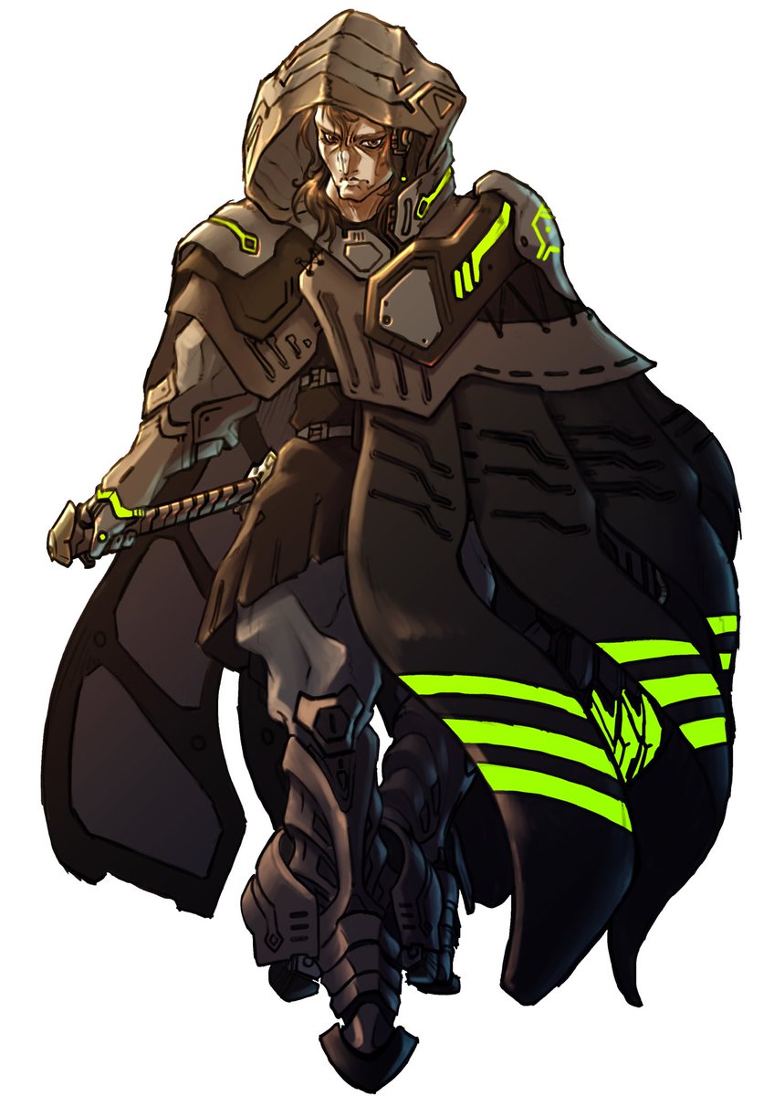#誰デザおっさん2022 私が描かせていただいたのはこちらのSF剣士おっさんになります! 柔らか素材でメカっぽい意匠を入れ込むという 普段やらないこともやってはいますが、手癖と色の好みが モロで出ているので分かりやすかったかも。 ヤスユキさんの剣士おじさまとの剣戟とかも見てみたい・・・! twitter.com/yas_yuki0573/s…
