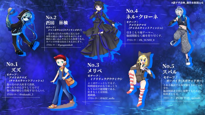 #誰デザ企画_創作水族館3rd 山賊タレチキンさんの素晴らしい企画に参加させて頂きました~!! 私は4番のネル・クローネちゃんの立ち絵を描かせていただきました! ツリーで私がデザインした子だと思う番号に投票してください!