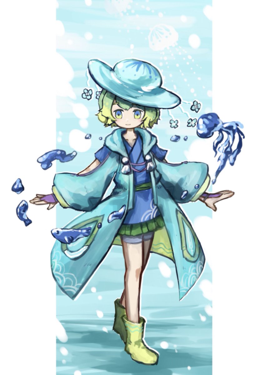 初めまして!誰デザではお世話になりました気儘狼と申します! 照岡さんがデザインした水の魔術師を勝手ながら描かせて頂きました!!クラゲの帽子やふよっとした袖、色味がとても可愛らしく、厚塗りともとても相性が良さそうなキャラで、描いてみたい欲に負けました…!! #誰デザ属性魔術師 twitter.com/yukibumi23/sta…