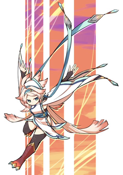 誰デザのまおらさんの火の魔術師勝手に描かせて頂きました!鳥っぽくて格闘家っぽい感じがとても好きです!魔術師だけど、鳥のようにピョンピョン跳ねて、格闘家のように俊敏な動きをしながら戦いそう…!! #誰デザ属性魔術師 twitter.com/_otorio/status…