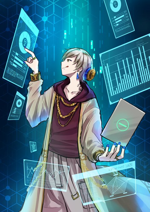 aknさんのペケくんを勝手に描かせて頂きました!!魔術×サイバーの組み合わせとても好きです!!そして設定画をガン見しながら描かせて頂いたのですが、描きこみや塗り方がとても素敵で!雰囲気引き継ぎたかったのですが到底真似出来ませんでした…!! #誰デザ属性魔術師 twitter.com/Cd_28t/status/…