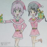 サンタさんな #せいせきたん と #調布たん 描きましたー!(*≧∇≦)ノ🎄✨🎁✨🐈️ 「メリークリスマス!🎉」 #クリスマスイラスト #ビッカメ娘 ( #ナイセン ) #ビッカメ娘を描き隊 #ファンアート #色鉛筆 #絵描きさんと繫がりたい