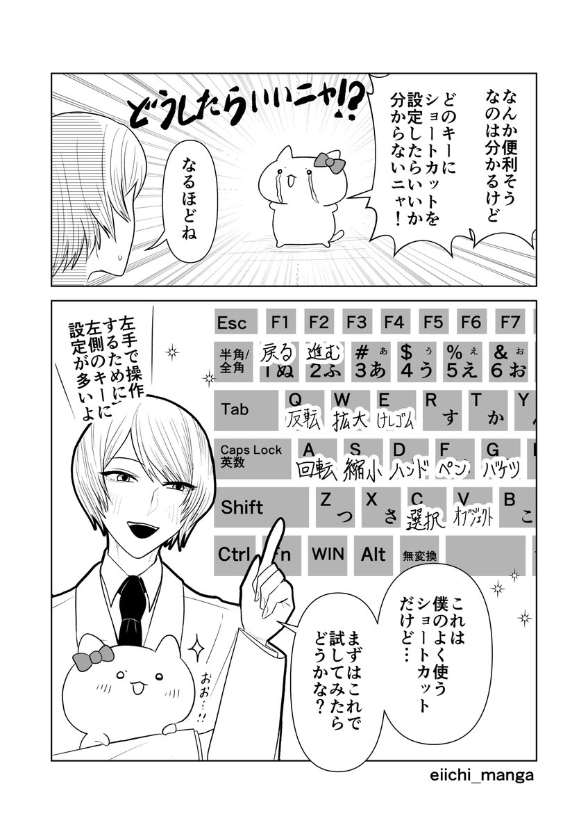 【超簡単!クリスタショートカット設定講座🔰】 ☑ツール切り替えが面倒くさい ☑ショートカット設定のやり方が分からない ☑我こそは効率厨だ という方におすすめです。慣れると本当に快適なので、是非一度お試しください。 #漫画が読めるハッシュタグ #講座 #初心者向け