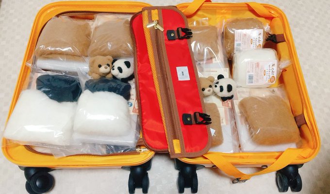 明後日行われる大人数の羊毛フェルト講習の準備完了(^-^)ゝ゛ 写真以外にも大きなバッグに道具いっぱい😅 人数が多いから、タイムスケジュールを考えて教えないと💨 #羊毛フェルト #講習会 #ハンドメイド好きさんと繋がりたい