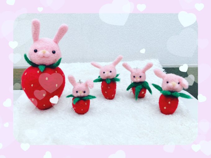 #羽田カルチャーセンター 羊毛講習 今月は、いちごみるくうさぎ。🐰 真赤で美味しそうなイチゴに、あのキャンディーの形をイメージしたお顔のうさぎさん。 ちょっぴり美味しそう⁈で、かわいいチャームになりました。 🍓🐰✨ #羊毛フェルト #講習会 #苺 #うさぎ #Rookの仲間たち