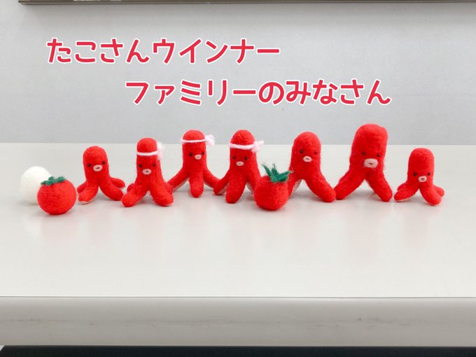 今月の講習 #羽田カルチャーセンター糀谷 編 たこさんウインナーを作りました。 ✨🐙✨ ちゃんと足の内側も再現しています👍😆✨ 可愛い表情を仕上げたら、完成です! ウインナーの集合写真📸✨ 楽しそう〜✨😆🐙✨ #羊毛フェルト #rookの仲間たち #ウインナー #たこさんウインナー #講習会