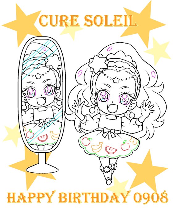 宇宙を照らす!灼熱のきらめき!キュアソレイユ! お誕生日おめでとう🎊💛 #講談社おともだち ピンクのイラストの線画です🌠 おめかししたソレイユがいたのでアップ👗✨ #9月8日はキュアソレイユの誕生日 #キュアソレイユおめでとう #キュアソレイユ生誕祭2022 #プリキュア
