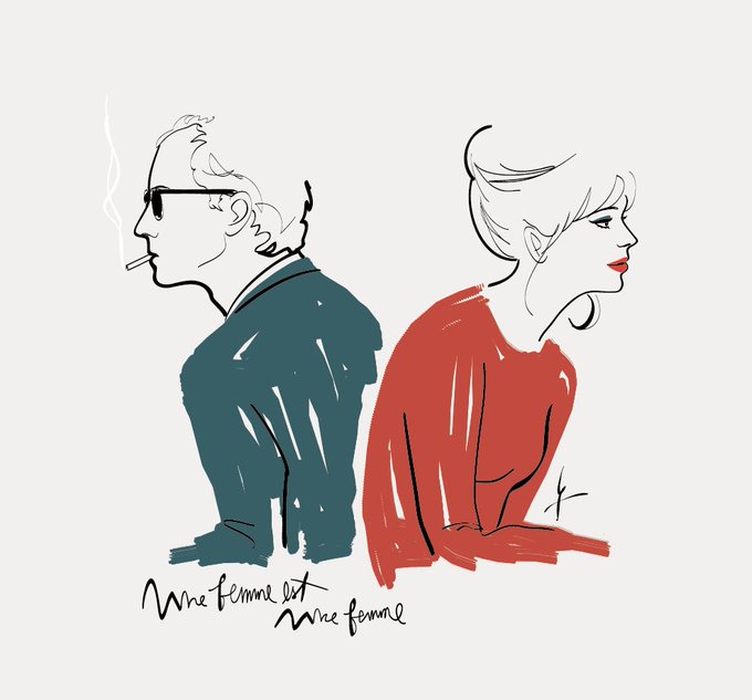 R.I.P. Jean-Luc Godard 「女は女である」 アンナのコケティッシュな魅力を引き出してる赤のニット。この映画を観るたび当時の新妻アンナへのお惚気を感じるゴダールの愛の赤。 #jeanlucgodard #annakarina #cinemaart #movieillustration #ファッションイラスト #映画イラスト #イラスト #谷本ヨーコ