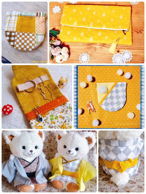 #~不撓不屈の愛に抱かれて~徳川家康誕生祭2022 いよいよ明日! 今日は過去作で💛🌶色に✨ 左上から…姫へお捧げポーチ/去年のBD作雪ヤスなクラッチバッグ/姫へお捧げ アクセサリーケース/岐阜コラボ衣装イメージのポーチ/同じく岐阜コラボ衣装(友情出演みつたん) #豆丸針子部屋