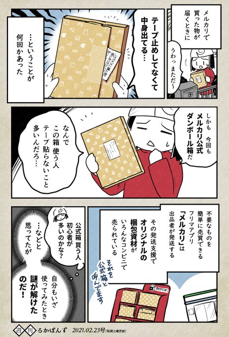 何度でも伝えたい。 出先でメルカリ等の荷物出すとき、テープ無くても大丈夫な方法。 今日また封をしてないメルカリ荷物が届いてしまったので、広がってくれ、頼む…(懇願 #漫画が読めるハッシュタグ #豆知識