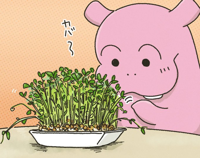 1月7日「八草目の豆苗」 今日は七草粥を食べる日ですが、 普通に豆苗を食べてしまいました。 八草目に豆苗はどうですか🌱 #七草粥 #春の七草 #豆苗 #ちゅっちゃんの毎日 #イラスト #illustration #1日1絵