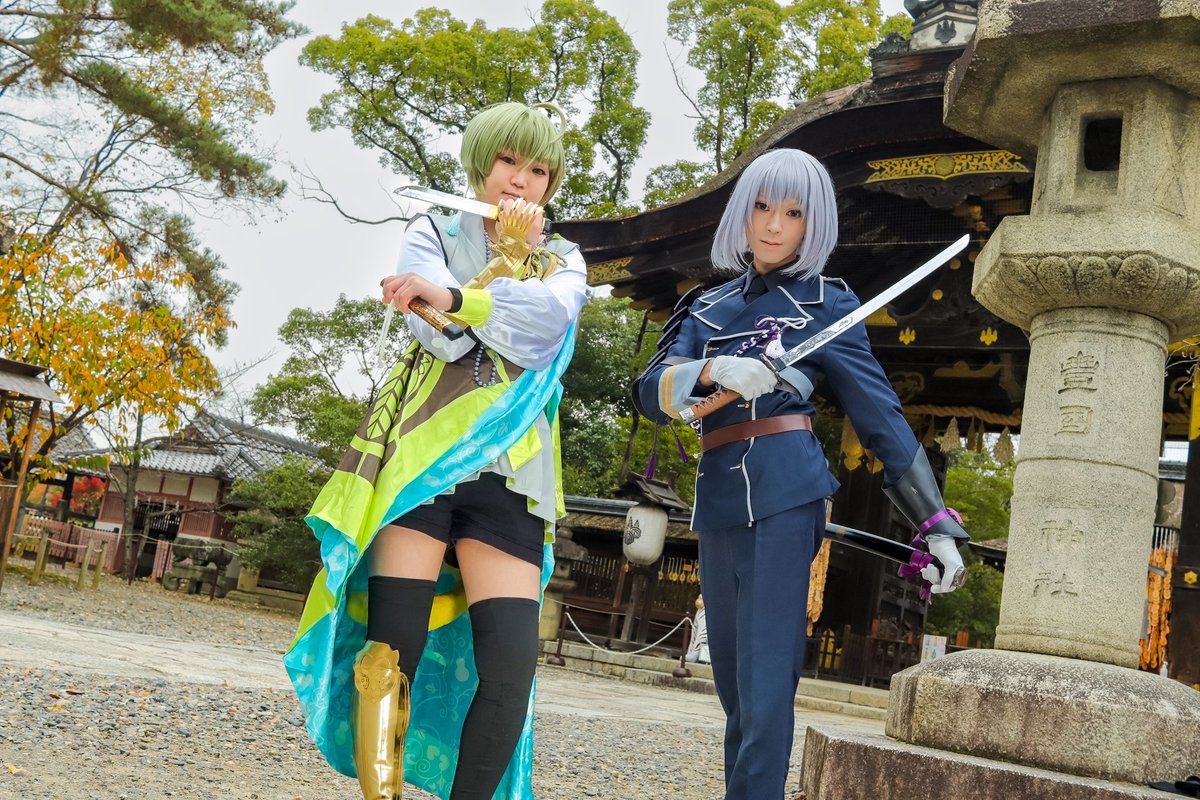 ⚠️cosplay⚠️ 美しき哉🍁 Photo: 黒音さん @731zero_7 撮り合いに巻き込みました!\(^o^)/ ありがとうございますーーー! イベント→ @shimogamocoseve/@shimogamosalon #鴨コス #鴨コス京都刀剣四社 #豊国神社