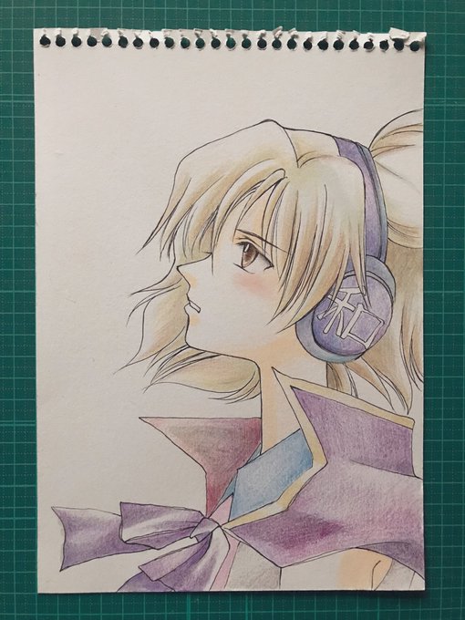 去年描いた神子さんと同じアングルで描いたけど、 特に上達していなかった。 +1時間。ツードロですねぇ。 #いいイヤホン・ヘッドホンの日 #深夜の真剣お絵描き60分一本勝負 #東方Project #豊聡耳神子