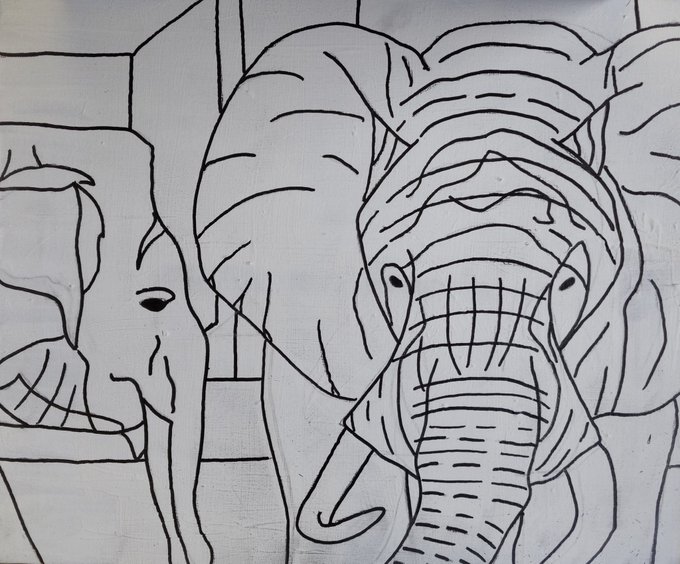 #デッサン #下描き #デッサン練習中 #ドローイング #絵描きさんと仲良くなりたい #絵柄が好みっていう人にフォローされたい #動物画 #象 昨日の象の下描き試しにアクリルで色を塗ったら、これだと伝えたい事と違う!と思って描き直し✏️ 若い象が楽しいからこっちおいでって感じ出てる?😅
