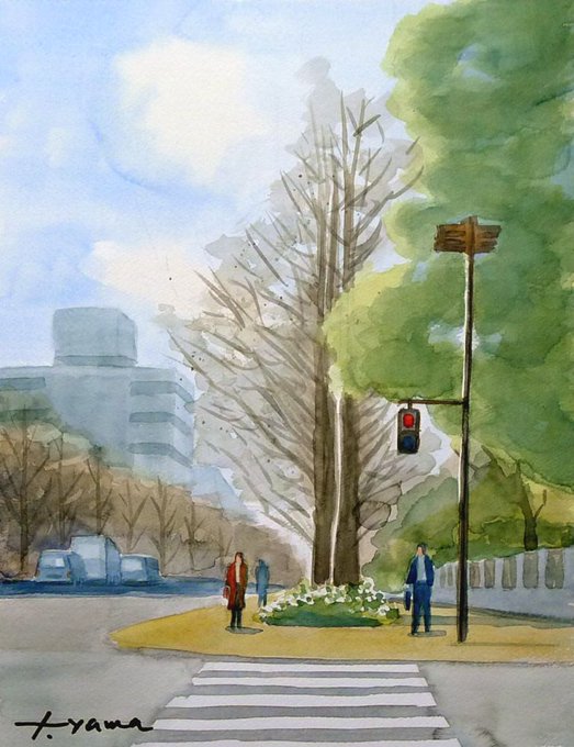 #水彩画 #透明水彩 #風景スケッチ #Watercolor #Landscape #sketch ようやくスケッチに適した季節になりました。グループで #象の鼻パーク に出かけ、海側から #日本大通り をスケッチしました。