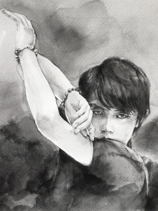 貝塚太一さんのお写真から描かせて頂きました ゆきみさんの墨絵に触発されて 墨汁と筆で描いてみました ぼかしもない(出来ない)塗りたくり😅どんまい💪‼️ #羽生結弦 #YuzuruHanyu𓃵 #貝塚太一 #FaOI2023宮城 #羽生クラスタ絵画部